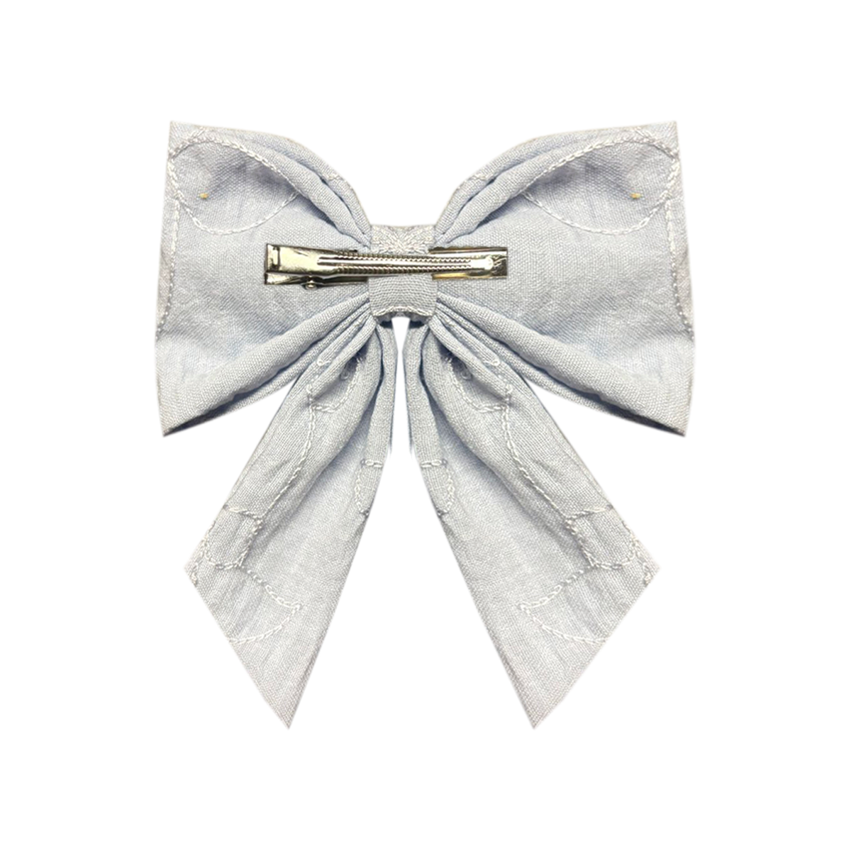 Crisp, timeless, and easy to pair with everything. This white hair bow is crafted from soft cotton drill with a clean dyed finish and includes a secure metal clip for all-day hold.