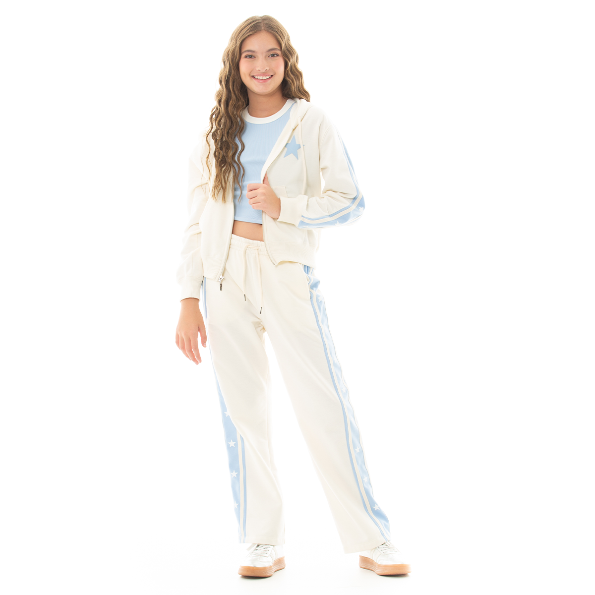 LIGHT BLUE STAR STRIPE HOODIE – FOR GIRLS