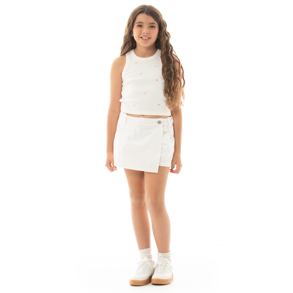 Classic and versatile white skort for girls, combining the comfort of shorts with the stylish look of a skirt.