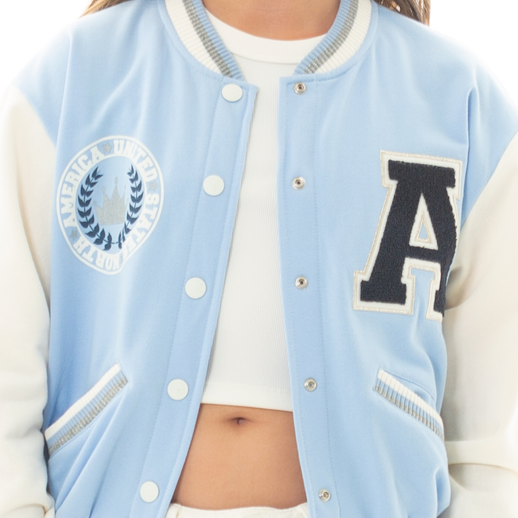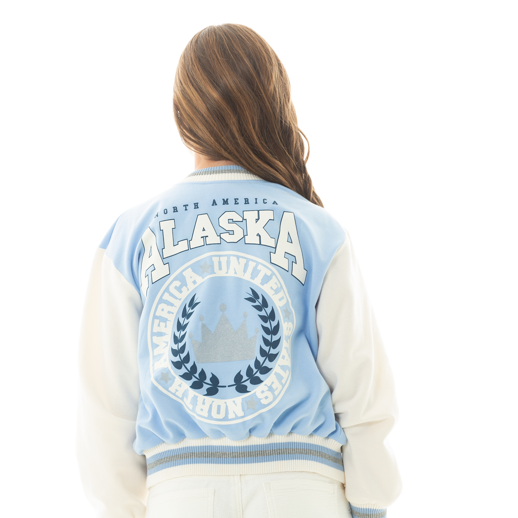 Girls' Alaska Varsity Jacket – Light Blue & White