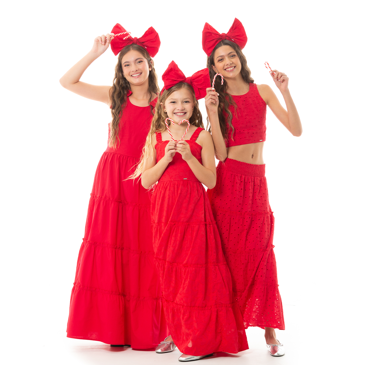 Elegant, fresh and full of movement. This beautiful red dress features wide shoulder straps with bow detail, a smocked back for a perfect fit, and a tiered skirt that flows with every step. Its ankle-length design makes it ideal for special occasions or festive moments.