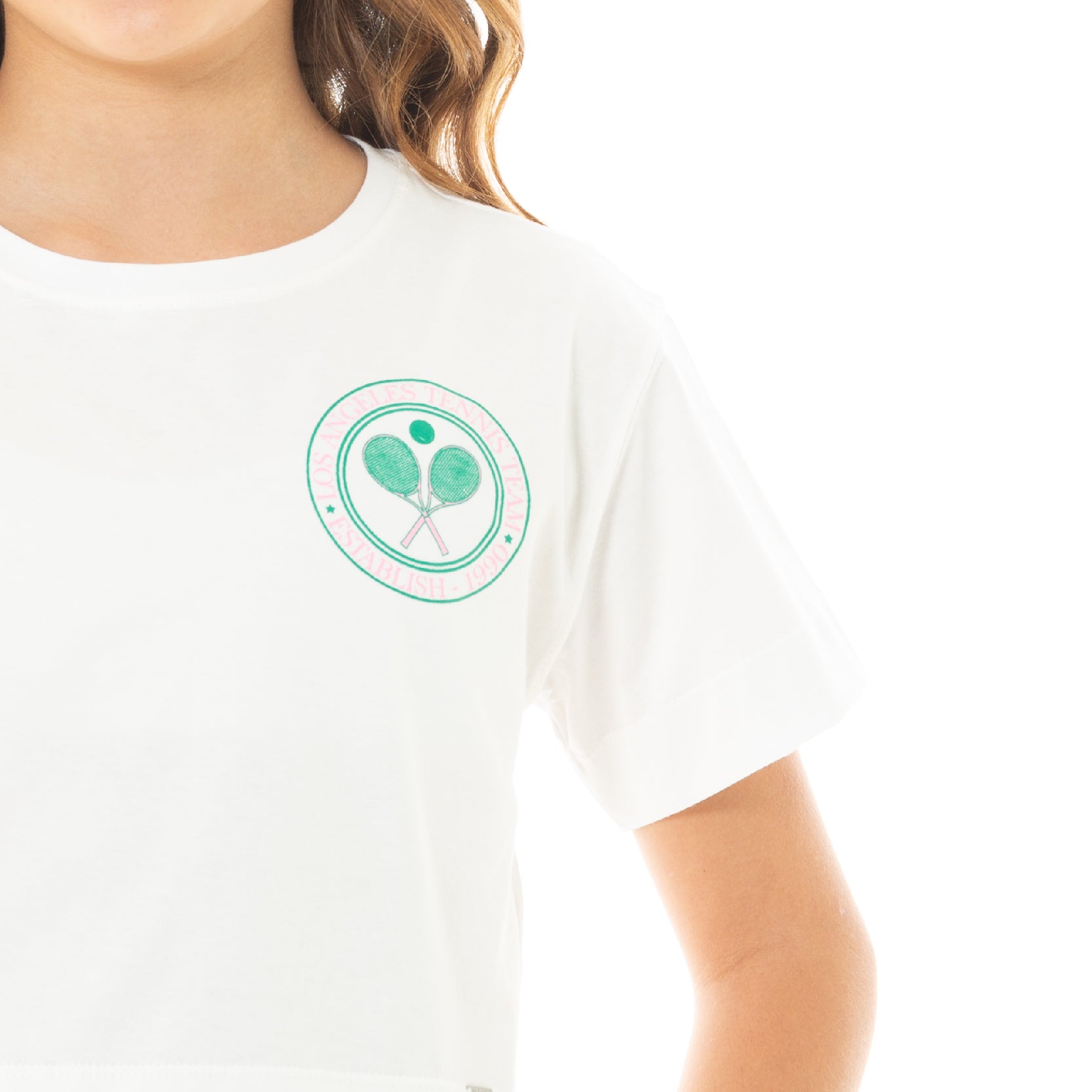 Minimal tennis club graphic on the chest
