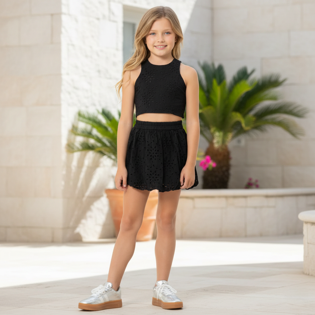 When she loves the look of a skirt but the fit of a pair of shorts, opt for the best of both worlds with our girls' skort set.