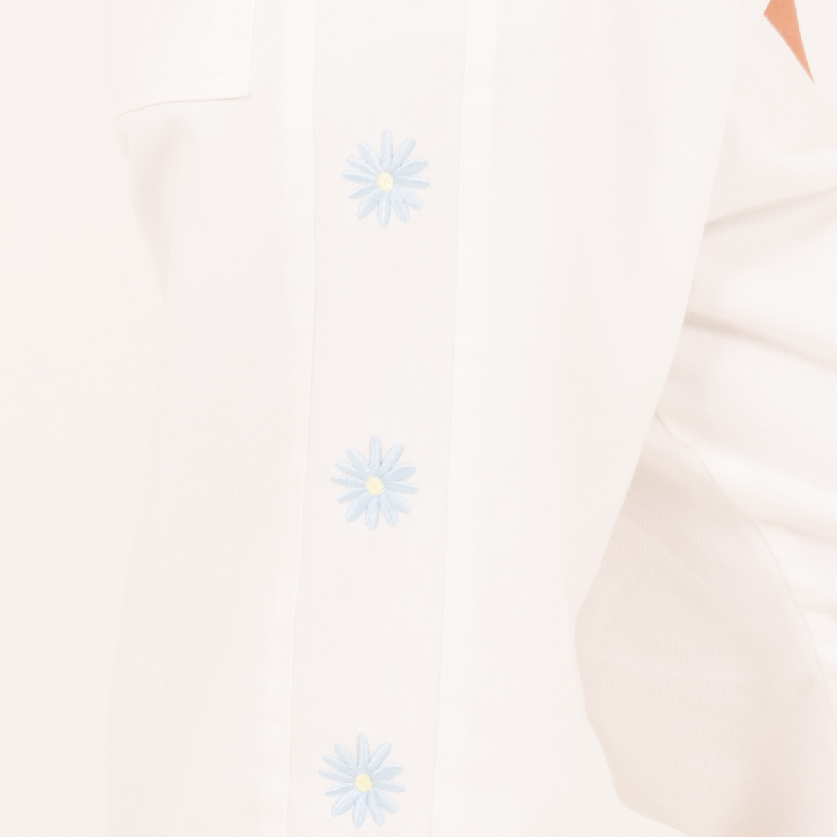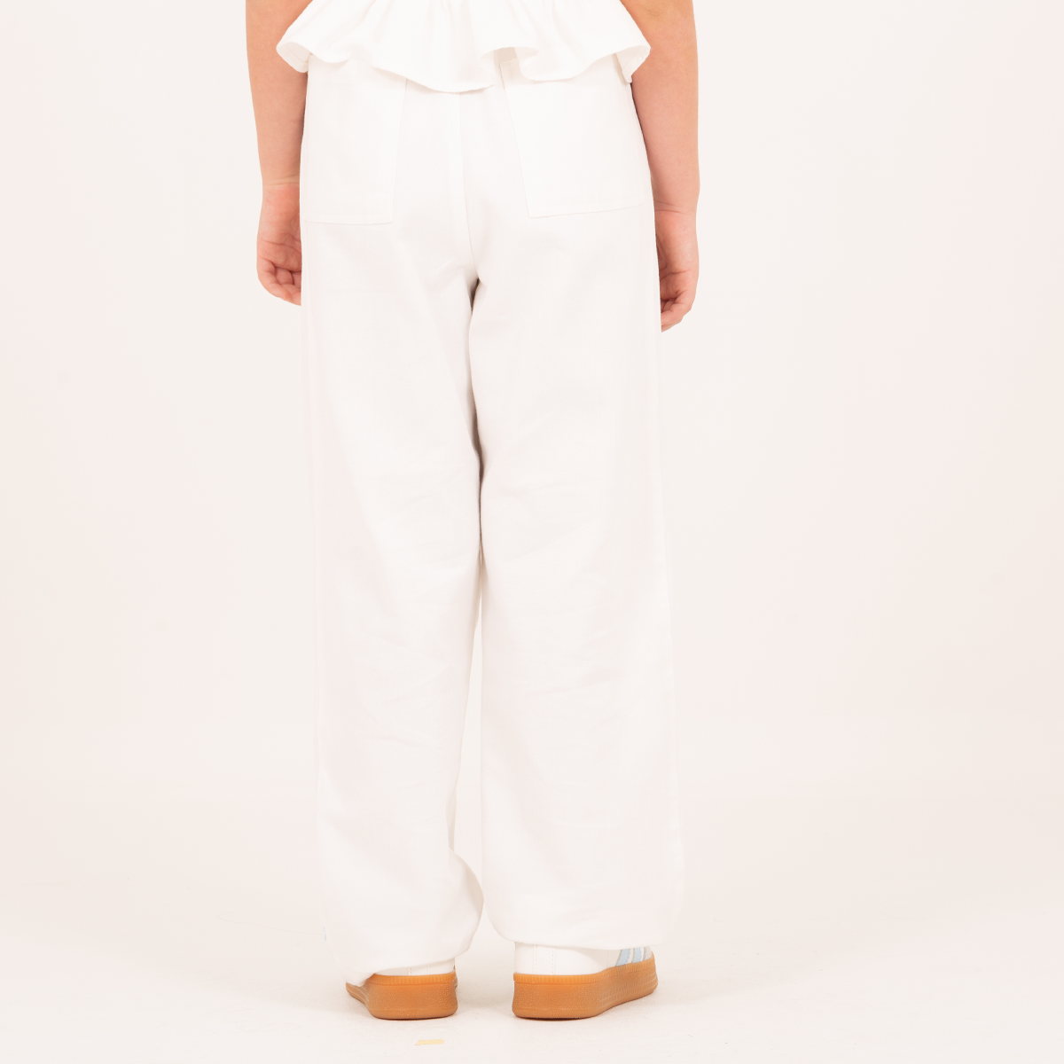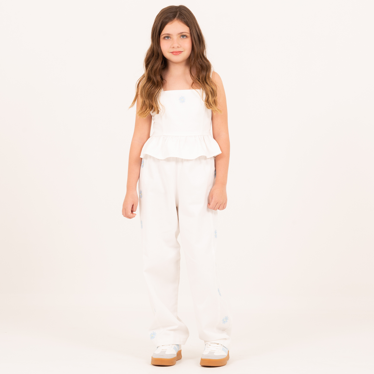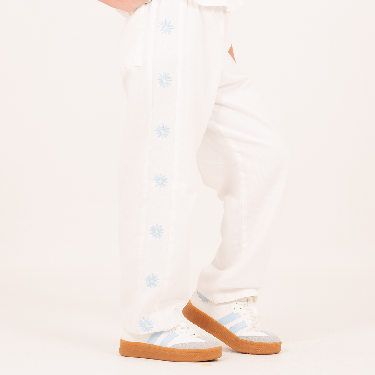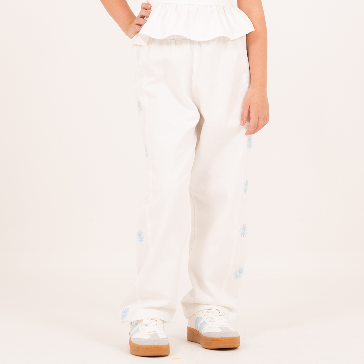 Ivory pants with delicate embroidered details and a relaxed silhouette for a fresh and elegant look.