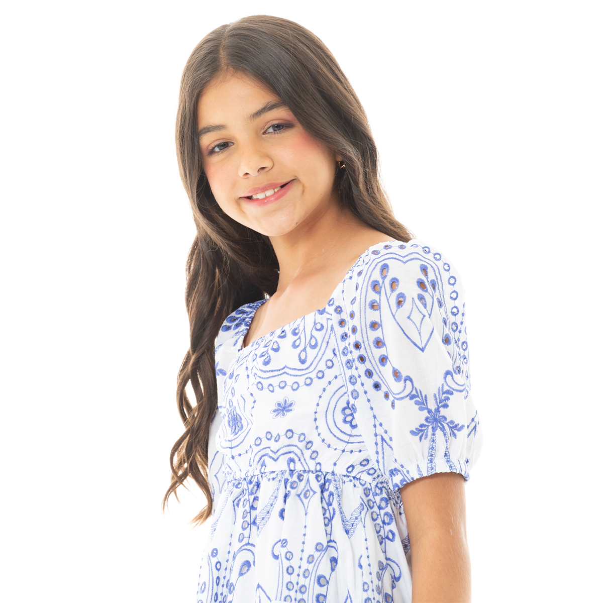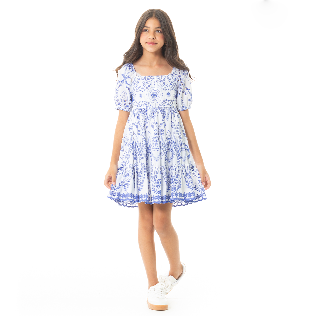 Girls' Blue & White Eyelet Dress – Mediterranean Style