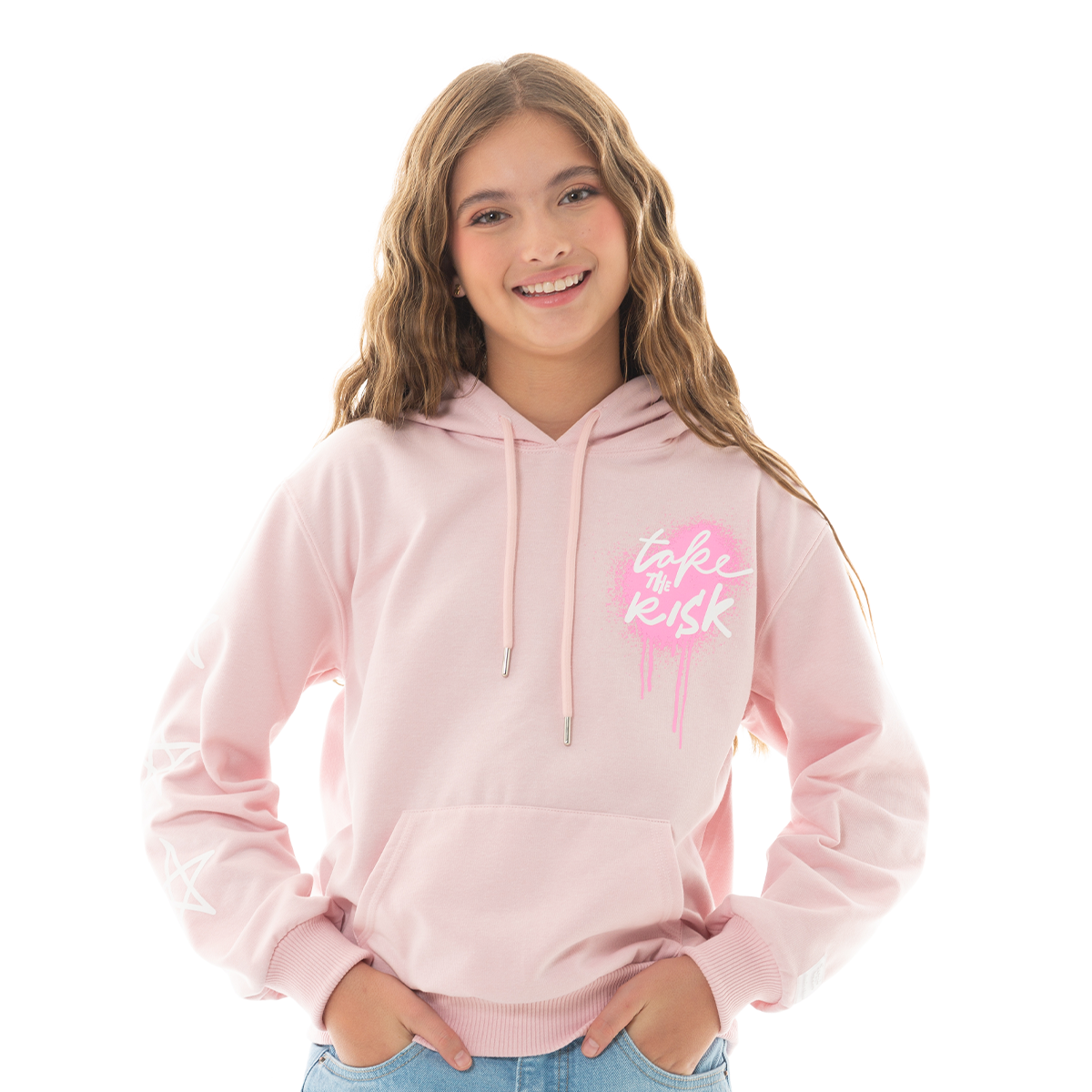 This girls’ Soft Pink hoodie features playful star details along the sleeves and a bold front and back graphic for a fun, statement look. Designed with a relaxed silhouette and cozy feel, it blends comfort and personality effortlessly. Perfect for pairing with denim or joggers for everyday styling.